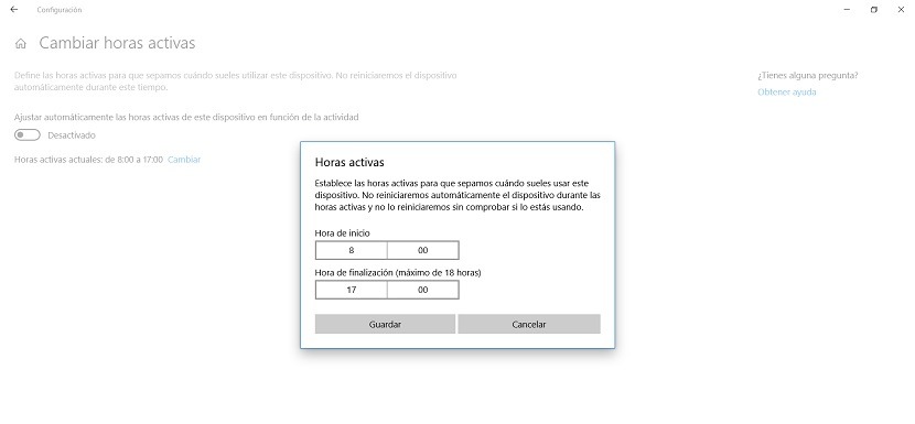 Es algo que nosotros mismos podemos configurar en todo momento, gracias a la función de horas activas. Esto ayuda a determinar las horas en las que no se va a poder reiniciar el ordenador.
